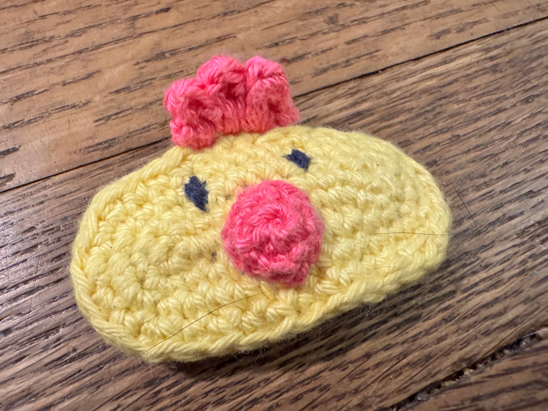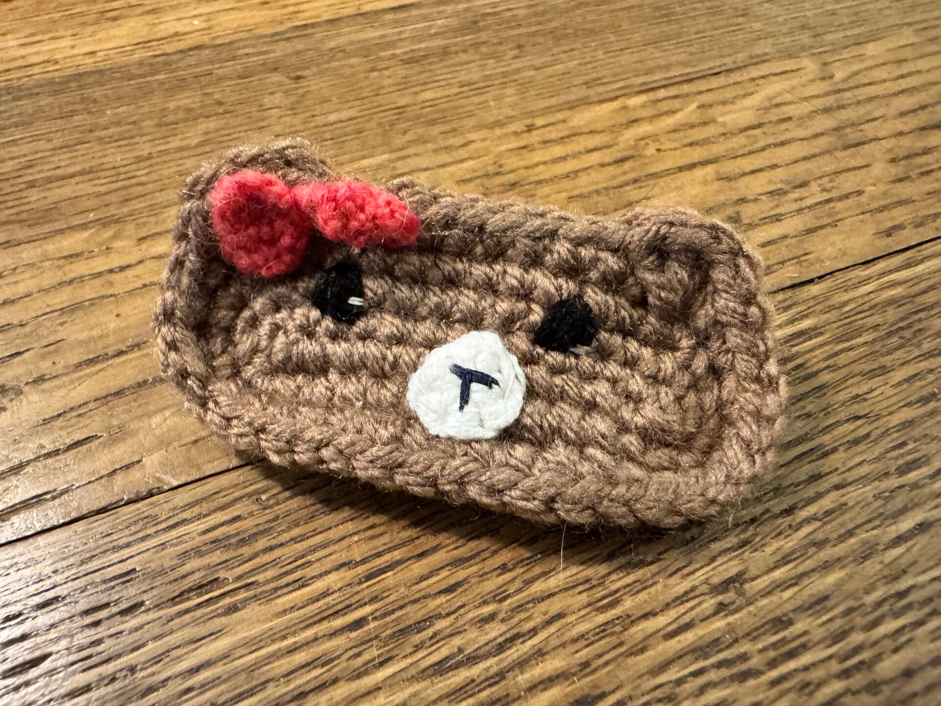 Handmade crochet animal hairbows. Choose from a yellow ducky, brown bear or a yellow bunny.