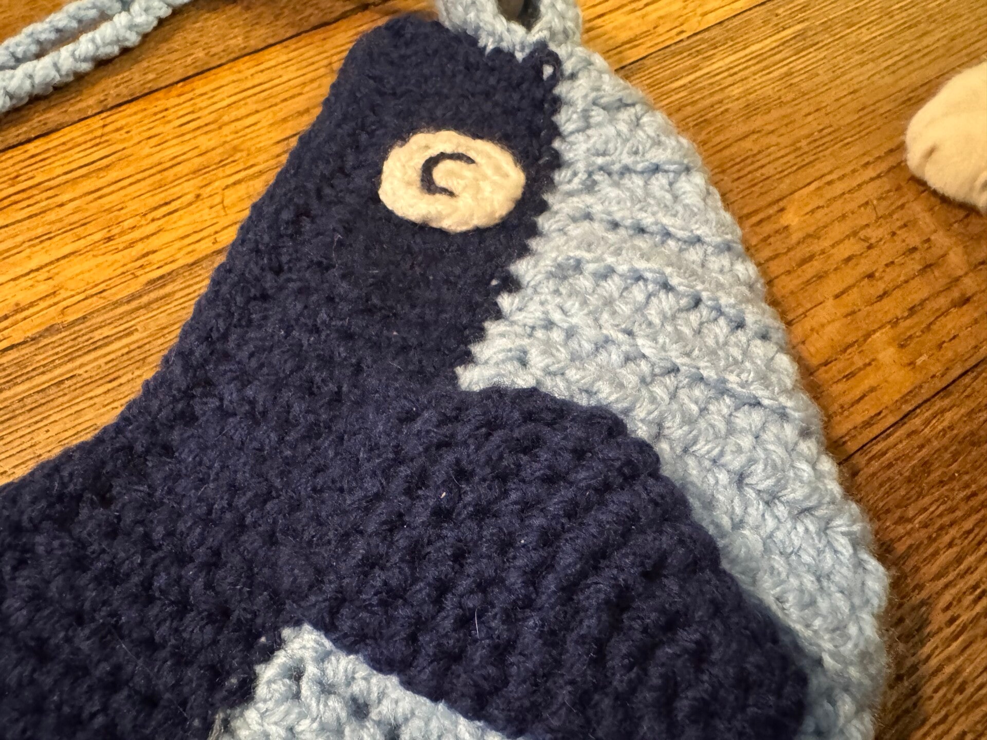 Cute handmade crochet whale cross body bag. Bag measures about 8" long and 4 1/2" wide. Cute details like crochet eyes and fins.